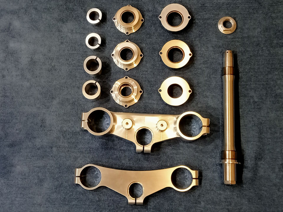 Project created for the QJ Factory Motor team, the official team of the QJ Motore brand in the Supersport World Championship and the first Chinese brand in history to participate in a World Motorcycle Championship with a motorcycle of its own production. The first step involved, for the pre-season tests, the study, design and creation of a steering kit completely adjustable in the steering angle (with 7 different options) and in the offset (with 3 options). This was possible thanks to a particular solution of bearings and inserts studied by us, given the impossibility of boring the steering seat for the assembly of the classic inserts. After testing all the possible combinations and finding the best angle and offset solution, we re-designed the entire kit making it fixed (as per FIM regulation) with the measurements decided during the tests.